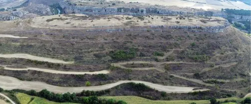La fortaleza de Tedeja se localiza al SO del caserío de Trespaderne, en el sector nororiental de la provincia de Burgos, ocupando la cima y la ladera meridional de un anticlinal de la Sierra de Tesla. Este relieve presenta una plataforma superior ligeramente aterrazada en varios niveles, con una marcada pendiente hacia el S que llega hasta la misma margen izquierda del Ebro, donde se abre el “Desf...
